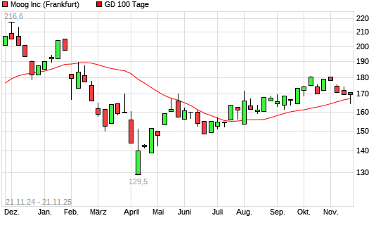 Mit dem Anstieg auf 171,70 EUR hat die Moog-Aktie am 20.11.2025 die 100-Tage-Linie nach oben gekreuzt.