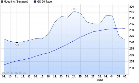 Mit dem Rücksetzer auf 271,40 EUR hat die Moog-Aktie am 06.03.2026 die 20-Tage-Linie nach unten gekreuzt.
