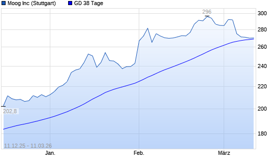 Mit dem Rücksetzer auf 267,20 EUR hat die Moog-Aktie am 10.03.2026 die 38-Tage-Linie nach unten gekreuzt.