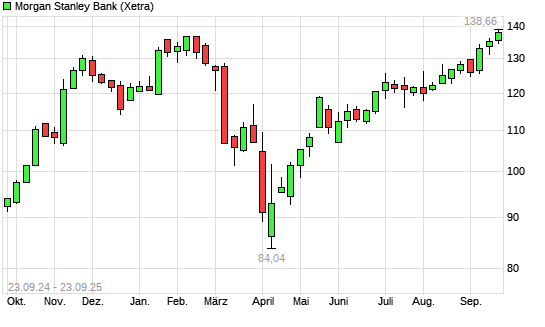 Mit dem Anstieg auf 136,16 EUR hat die Morgan Stanley-Aktie (ISIN US6174464486) am 22.09.2025 ein neues 6-Monats-Hoch erreicht und damit den Kurs vom 19.09.2025 eingestellt.