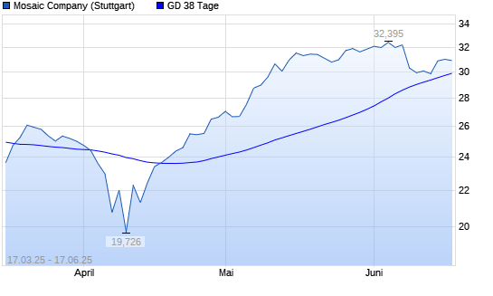 Mit dem Anstieg auf 31,29 EUR hat die Mosaic-Aktie am 16.06.2025 die 38-Tage-Linie nach oben gekreuzt.