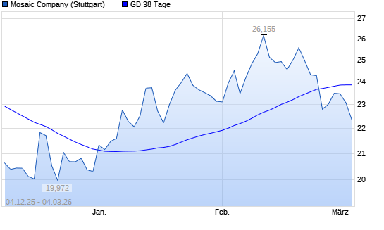 Mit dem Rücksetzer auf 23,20 EUR hat die Mosaic-Aktie am 03.03.2026 die 38-Tage-Linie nach unten gekreuzt.