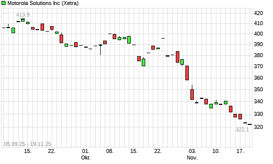 Mit dem Rücksetzer auf 321,30 EUR hat die Motorola Solutions-Aktie (ISIN US6200763075) am 18.11.2025 ein neues 12-Monats-Tief erreicht und damit den Kurs vom 17.11.2025 eingestellt.