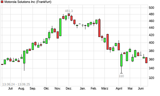 Mit dem Rücksetzer auf 353,30 EUR hat die Motorola Solutions-Aktie (ISIN US6200763075) am 12.06.2025 ein neues 6-Monats-Tief erreicht und damit den Kurs vom 06.05.2025 eingestellt.