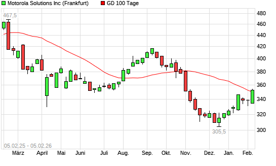 Mit dem Anstieg auf 353,80 EUR hat die Motorola Solutions-Aktie am 04.02.2026 die 100-Tage-Linie nach oben gekreuzt.