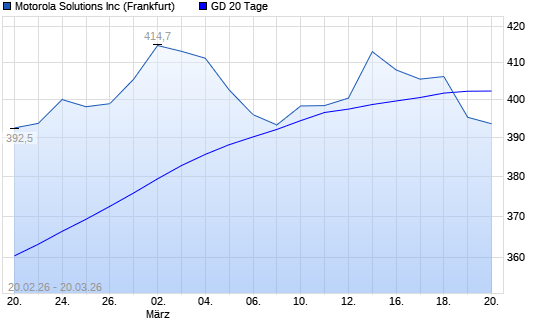 Mit dem Rücksetzer auf 395,30 EUR hat die Motorola Solutions-Aktie am 19.03.2026 die 20-Tage-Linie nach unten gekreuzt.