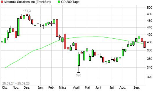 Mit dem Rücksetzer auf 391,60 EUR hat die Motorola Solutions-Aktie am 24.09.2025 die 200-Tage-Linie nach unten gekreuzt.Die Motorola Solutions-Aktie befand sich seit dem 29.08.2025 im langfristigen ...weiterlesen