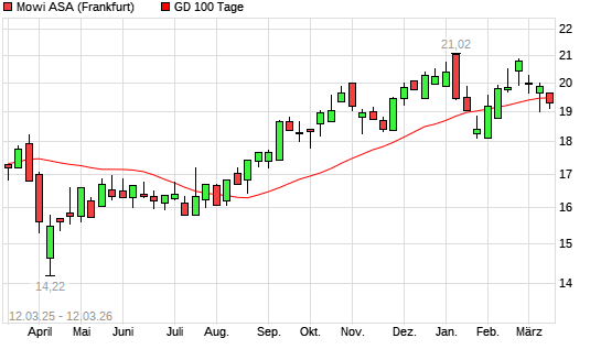 Mit dem Rücksetzer auf 19,31 EUR hat die Mowi ASA-Aktie am 11.03.2026 die 100-Tage-Linie nach unten gekreuzt.