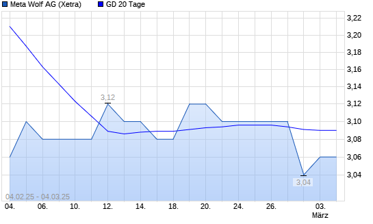 Mit dem Rücksetzer auf 3,02 EUR hat die Muehl Product & Service-Aktie am 03.03.2025 die 20-Tage-Linie nach unten gekreuzt.