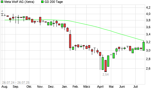 Mit dem Rücksetzer auf 3,16 EUR hat die Muehl Product & Service-Aktie am 25.07.2025 die 200-Tage-Linie nach unten gekreuzt.