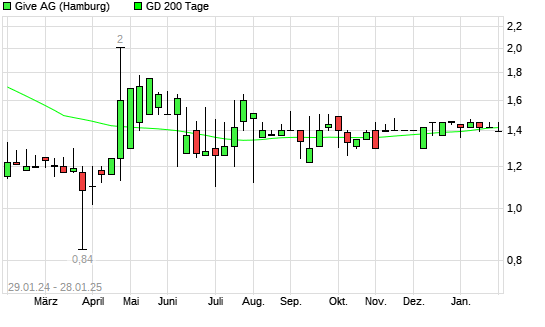 Mit dem Anstieg auf 1,45 EUR hat die Muehlhan-Aktie am 27.01.2025 die 200-Tage-Linie nach oben gekreuzt.