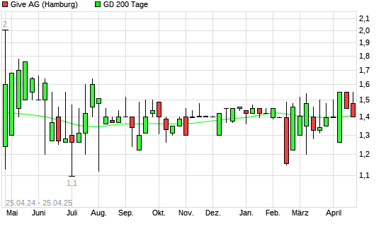 Mit dem Rücksetzer auf 1,40 EUR hat die Muehlhan-Aktie am 24.04.2025 die 200-Tage-Linie nach unten gekreuzt.