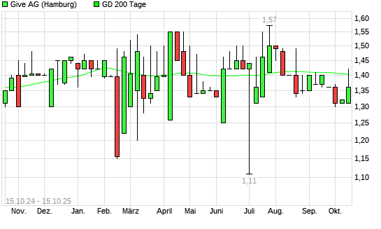 Mit dem Rücksetzer auf 1,36 EUR hat die Muehlhan-Aktie am 14.10.2025 die 200-Tage-Linie nach unten gekreuzt.