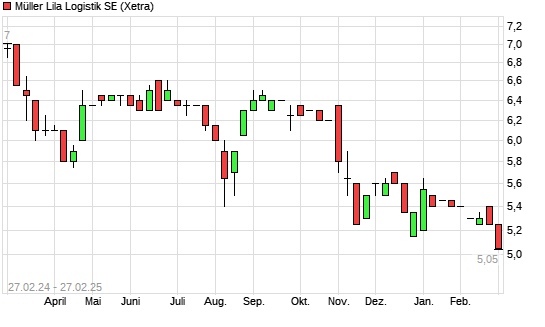 Mit dem Rücksetzer auf 4,90 EUR hat die Müller - Die lila Logistik-Aktie (ISIN DE0006214687) am 26.02.2025 ein neues 12-Monats-Tief erreicht und damit den Kurs vom 23.12.2024 eingestellt.