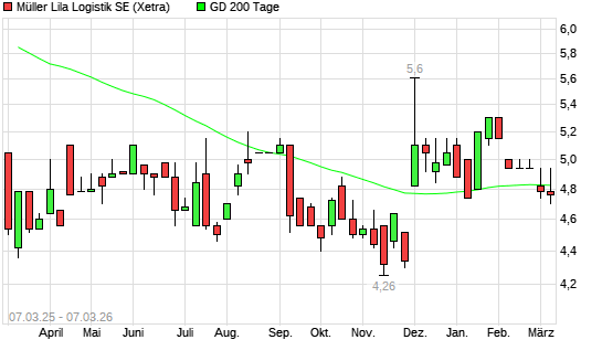 Mit dem Rücksetzer auf 4,62 EUR hat die Müller - Die lila Logistik-Aktie am 06.03.2026 die 200-Tage-Linie nach unten gekreuzt.