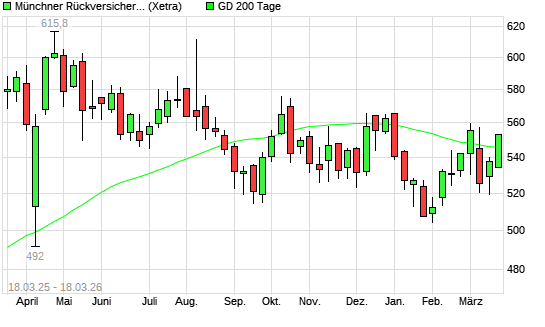 Mit dem Anstieg auf 551,40 EUR hat die Münchener Rück-Aktie am 17.03.2026 die 200-Tage-Linie nach oben gekreuzt.