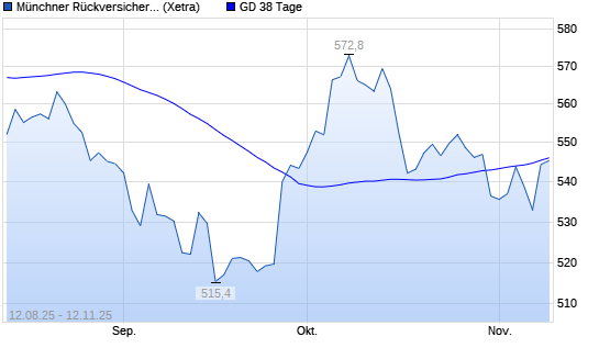 Mit dem Anstieg auf 548,00 EUR hat die Münchener Rück-Aktie am 11.11.2025 die 38-Tage-Linie nach oben gekreuzt.