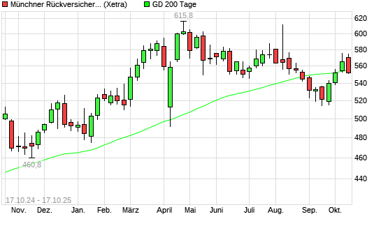 Mit dem Rücksetzer auf 553,60 EUR hat die Münchener Rück-Aktie am 16.10.2025 die 200-Tage-Linie nach unten gekreuzt.