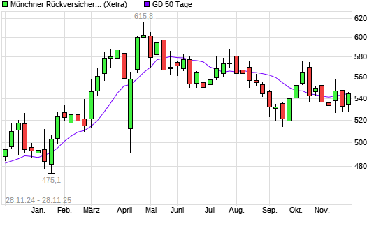 Mit dem Rücksetzer auf 544,80 EUR hat die Münchener Rück-Aktie am 27.11.2025 die 50-Tage-Linie nach unten gekreuzt.