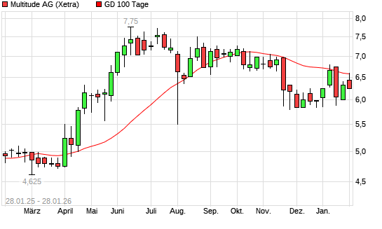 Mit dem Anstieg auf 6,56 EUR hat die Multitude-Aktie am 27.01.2026 die 100-Tage-Linie nach oben gekreuzt.