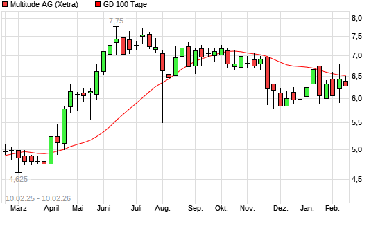 Mit dem Anstieg auf 6,50 EUR hat die Multitude-Aktie am 09.02.2026 die 100-Tage-Linie nach oben gekreuzt.