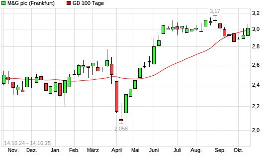 Mit dem Anstieg auf 3,06 EUR hat die M&G-Aktie am 13.10.2025 die 100-Tage-Linie nach oben gekreuzt.