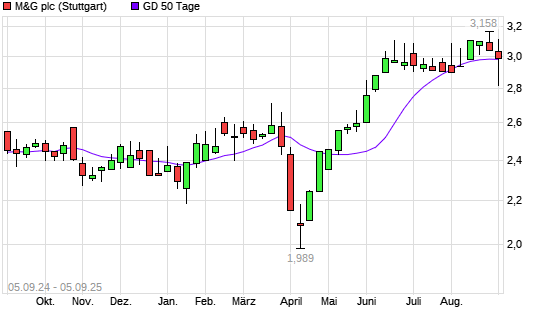 Mit dem Anstieg auf 3,05 EUR hat die M&G-Aktie am 04.09.2025 die 50-Tage-Linie nach oben gekreuzt.