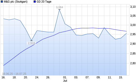 Mit dem Rücksetzer auf 2,98 EUR hat die M&G-Aktie am 15.07.2025 die 20-Tage-Linie nach unten gekreuzt.