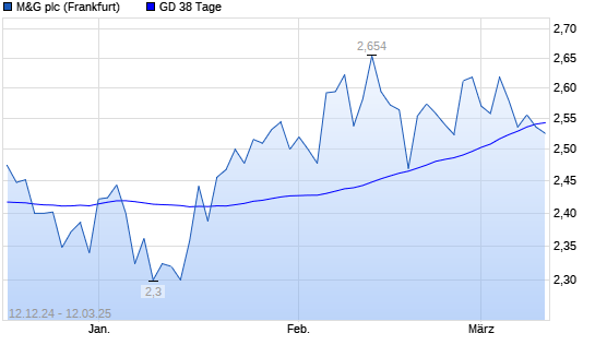 Mit dem Rücksetzer auf 2,48 EUR hat die M&G-Aktie am 11.03.2025 die 38-Tage-Linie nach unten gekreuzt.