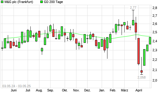 Mit dem Anstieg auf 2,46 EUR hat die M&G-Aktie am 02.05.2025 die 200-Tage-Linie nach oben gekreuzt.Die M&G-Aktie befand sich seit dem 28.04.2025 im langfristigen Abwärtstrend und hat in ...weiterlesen