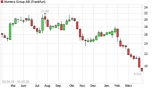 Mit dem Rücksetzer auf 9,31 EUR hat die Munters Group B-Aktie (ISIN SE0009806607) am 31.03.2025 ein neues 12-Monats-Tief erreicht und damit den Kurs vom 28.03.2025 eingestellt.