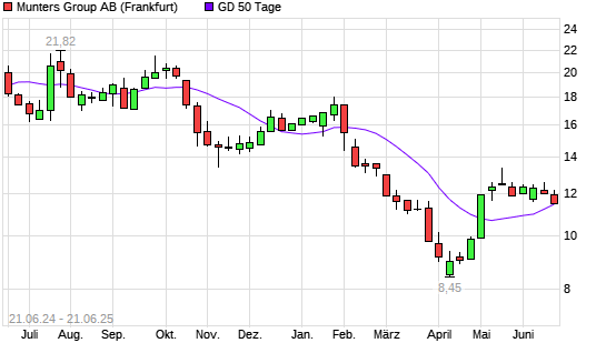 Mit dem Rücksetzer auf 11,49 EUR hat die Munters Group B-Aktie am 20.06.2025 die 50-Tage-Linie nach unten gekreuzt.