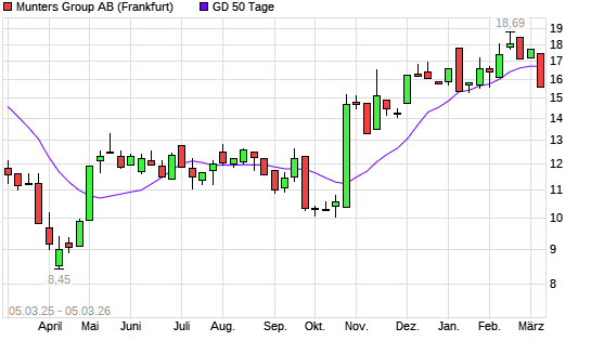 Mit dem Rücksetzer auf 15,75 EUR hat die Munters Group B-Aktie am 04.03.2026 die 50-Tage-Linie nach unten gekreuzt.