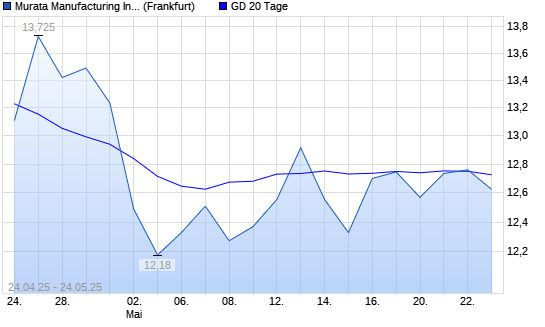 Mit dem Rücksetzer auf 12,63 EUR hat die Murata Manufacturing-Aktie am 23.05.2025 die 20-Tage-Linie nach unten gekreuzt.