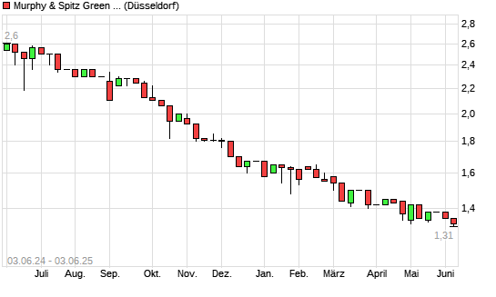 Mit dem Rücksetzer auf 1,32 EUR hat die Murphy & Spitz Green Capital-Aktie (ISIN DE000A0KPM66) am 02.06.2025 ein neues 5-Jahres-Tief erreicht und damit den Kurs vom 13.05.2025 eingestellt.