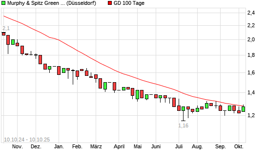 Mit dem Rücksetzer auf 1,27 EUR hat die Murphy & Spitz Green Capital-Aktie am 09.10.2025 die 100-Tage-Linie nach unten gekreuzt.