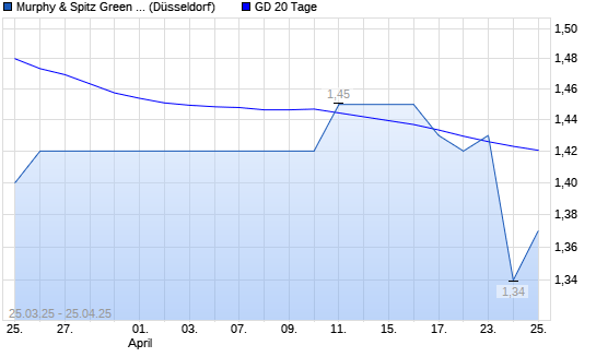 Mit dem Rücksetzer auf 1,34 EUR hat die Murphy & Spitz Green Capital-Aktie am 24.04.2025 die 20-Tage-Linie nach unten gekreuzt.