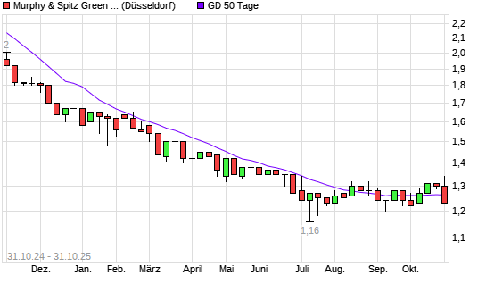 Mit dem Rücksetzer auf 1,25 EUR hat die Murphy & Spitz Green Capital-Aktie am 30.10.2025 die 50-Tage-Linie nach unten gekreuzt.