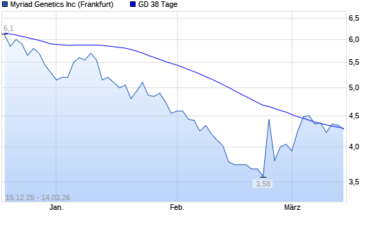 Mit dem Rücksetzer auf 4,28 EUR hat die Myriad Genetics-Aktie am 13.03.2026 die 38-Tage-Linie nach unten gekreuzt.