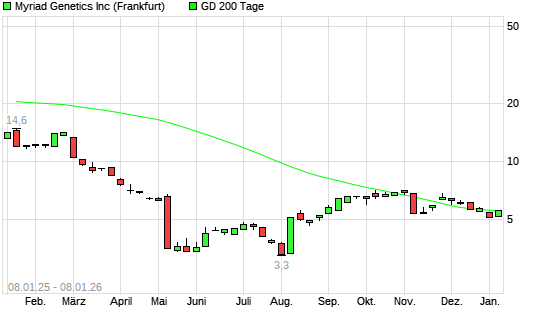 Mit dem Anstieg auf 5,50 EUR hat die Myriad Genetics-Aktie am 07.01.2026 die 200-Tage-Linie nach oben gekreuzt.Die Myriad Genetics-Aktie befand sich seit dem 29.12.2025 im ...weiterlesen