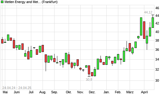 Mit dem Anstieg auf 45,06 EUR hat die Mytilineos Holding-Aktie (ISIN GRS393503008) am 23.04.2025 ein neues All-Time-High erreicht und damit den Kurs vom 21.04.2025 eingestellt.
