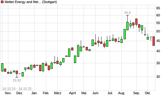 Mit dem Rücksetzer auf 43,20 EUR hat die Mytilineos Holding-Aktie (ISIN GB00BTQGS779) am 15.10.2025 ein neues All-Time-Low erreicht und damit den Kurs vom 13.10.2025 eingestellt.