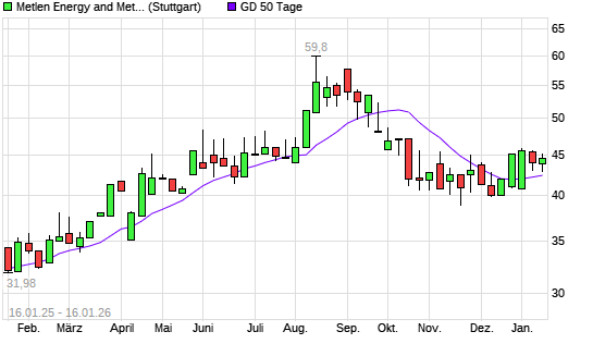 Mit dem Anstieg auf 43,08 EUR hat die Mytilineos Holding-Aktie am 15.01.2026 die 50-Tage-Linie nach oben gekreuzt.