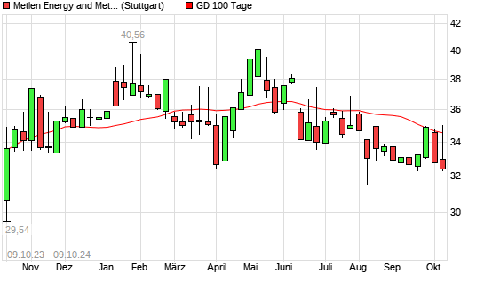 Mit dem Rücksetzer auf 32,50 EUR hat die Mytilineos Holding-Aktie am 08.10.2024 die 100-Tage-Linie nach unten gekreuzt.