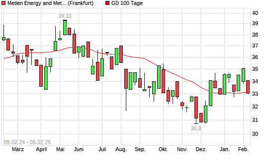 Mit dem Rücksetzer auf 32,50 EUR hat die Mytilineos Holding-Aktie am 04.02.2025 die 100-Tage-Linie nach unten gekreuzt.