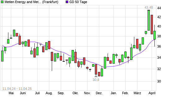 Mit dem Rücksetzer auf 35,78 EUR hat die Mytilineos Holding-Aktie am 10.04.2025 die 50-Tage-Linie nach unten gekreuzt.