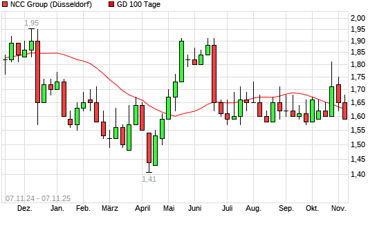 Mit dem Rücksetzer auf 1,60 EUR hat die NCC GROUP-Aktie am 06.11.2025 die 100-Tage-Linie nach unten gekreuzt.