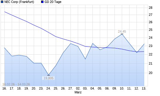 Mit dem Anstieg auf 23,23 EUR hat die NEC-Aktie am 13.03.2026 die 20-Tage-Linie nach oben gekreuzt.