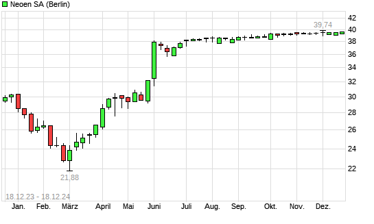 Mit dem Anstieg auf 39,52 EUR hat die NEOEN-Aktie (ISIN FR0011675362) am 17.12.2024 ein neues 12-Monats-Hoch erreicht und damit den Kurs vom 16.12.2024 eingestellt.