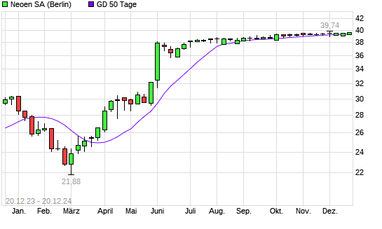 Mit dem Rücksetzer auf 39,06 EUR hat die NEOEN-Aktie am 19.12.2024 die 50-Tage-Linie nach unten gekreuzt.